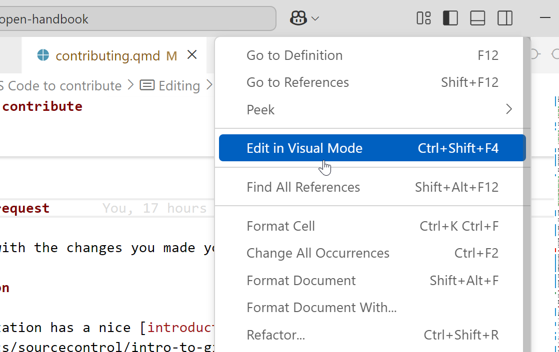 The Quarto tutorial has more tips on using VS Code to edit Quarto pages.