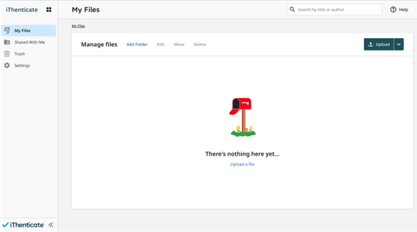 After a successful login the starting page of the iThenticate app appears: