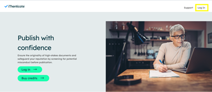 After receiving your credentials, you can log in on the iThenticate website, clicking on the ‘Login’ button in the top right corner.