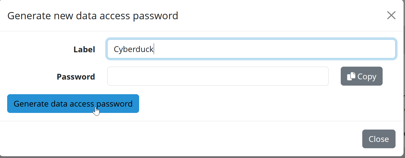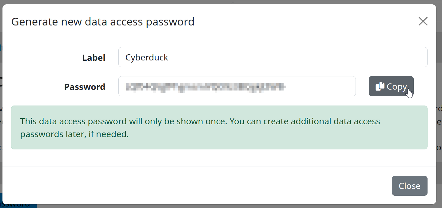 - The password is shown. Click Copy to copy it to the clipboard. After this you can use CTRL-v to paste it.