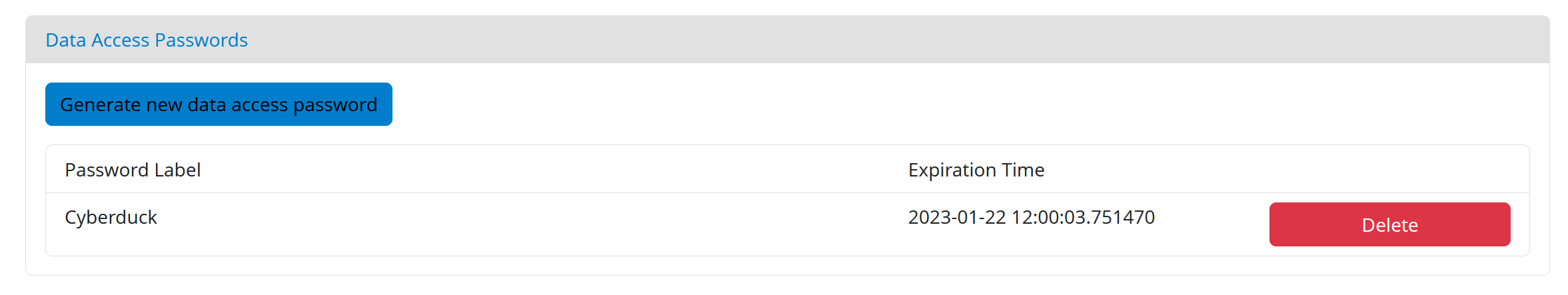 Data access passwords expire in 90 days, you can view the expiration time in the list.